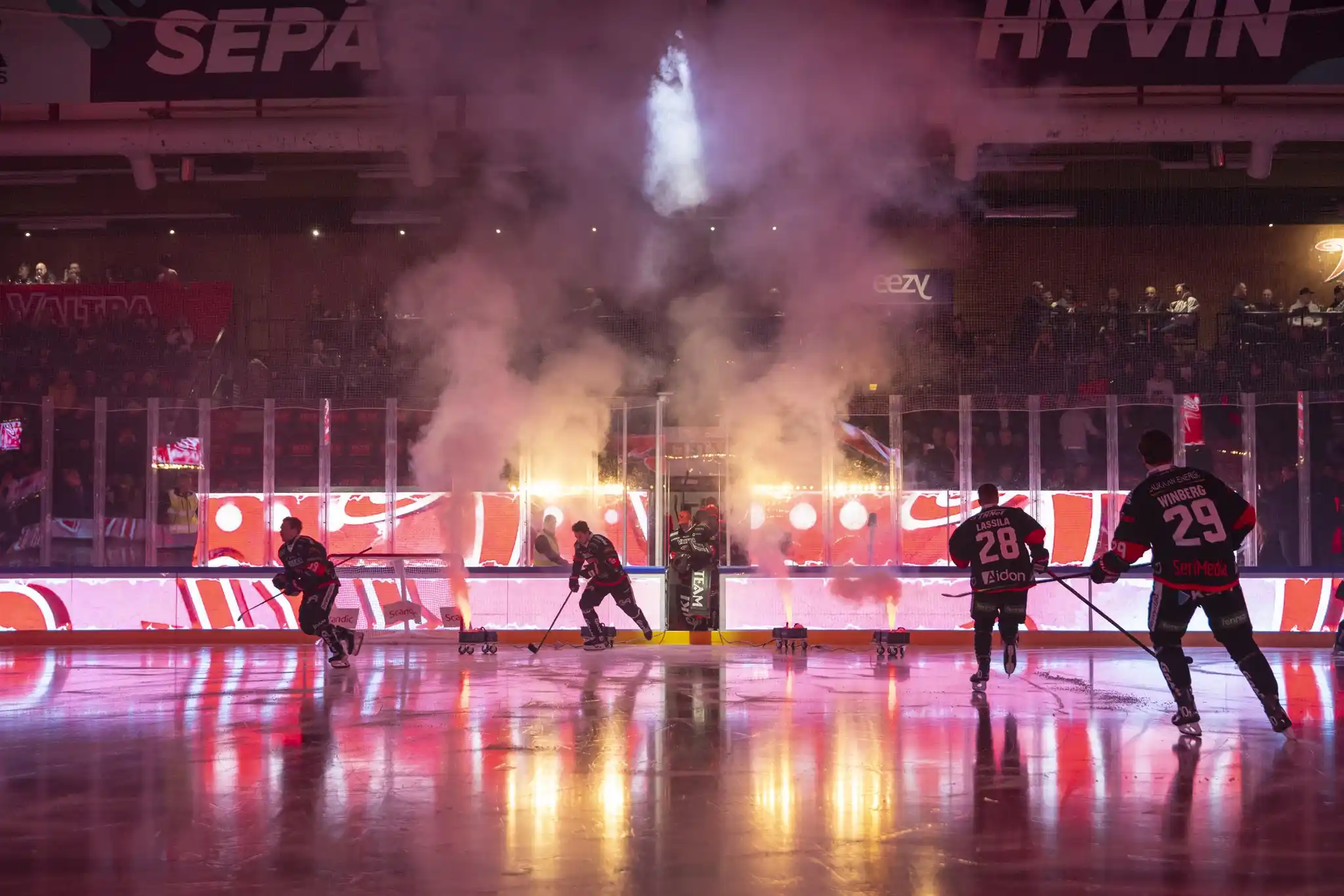 Hurrikaanin päädyssä olevat 2 LED-näyttöä ovat helposti huomattavissa, suoraan maalin takana. Voit näyttää joko saman materiaalin molemmilla näytöillä, tai 2 eri materiaalia oikealla ja vasemmalla.