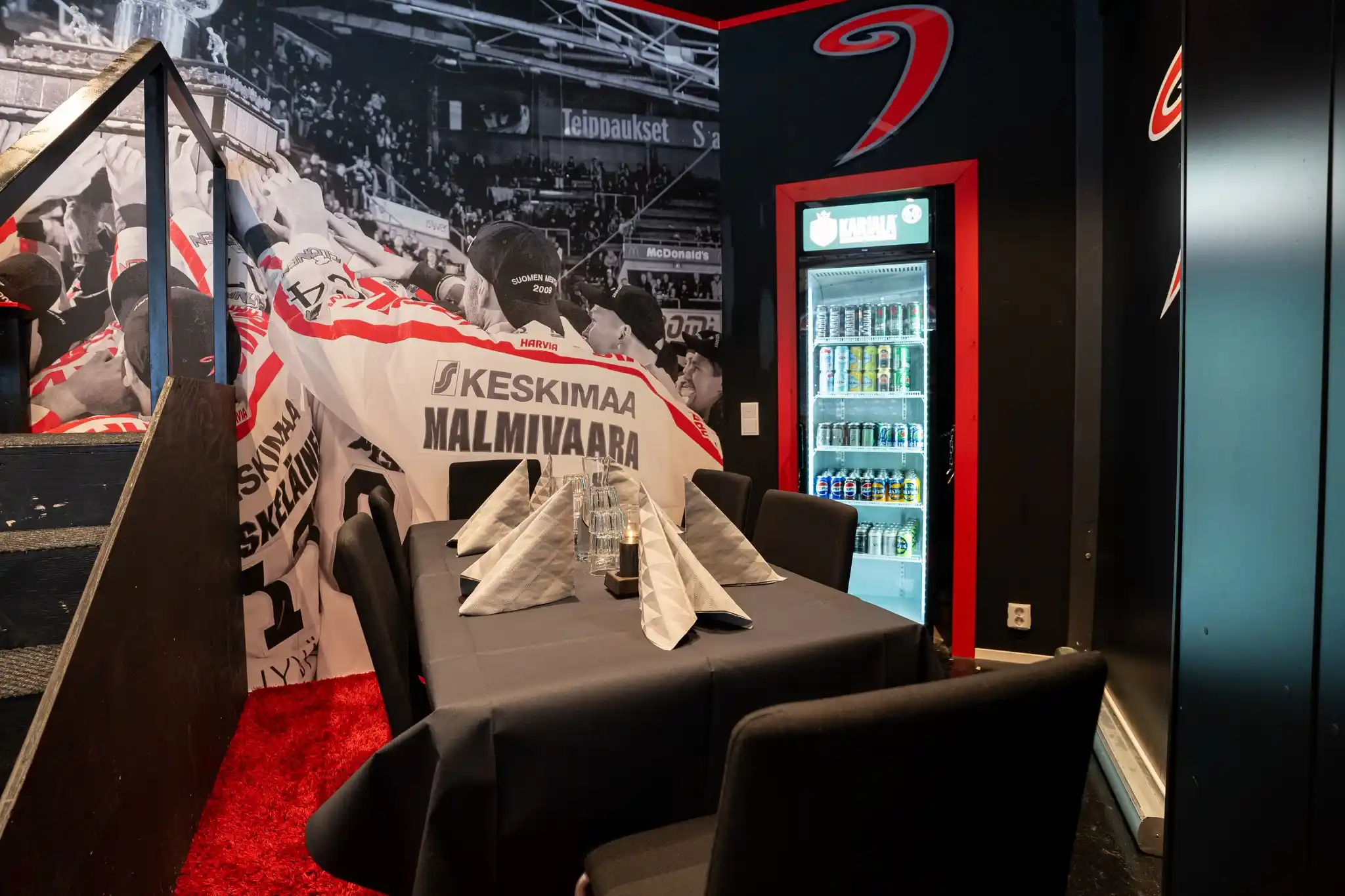 Black Corneriin mahtuu sujuvasti 10-12 henkkilöä ja tilan voi varata myös pienemmälle seurueelle. Iltasi Black Cornerissa sisältää Hurrikaaniklubin herkullisen buffet-ruokailun, jälkiruokakahvin sekä Elosen leivoksen. Ottelua seuraatte omasta Corner-katsomosta, jonne mahtuu istumaan useammalle eri tasolle Cornerin omalle parvelle sekä Cornerin sisäpuolelle. Tilassa on myös oma jääkaappi, jossa on tarjolla viileitä mietoja alkoholijuomia. Tilassa on anniskeluoikeudet.