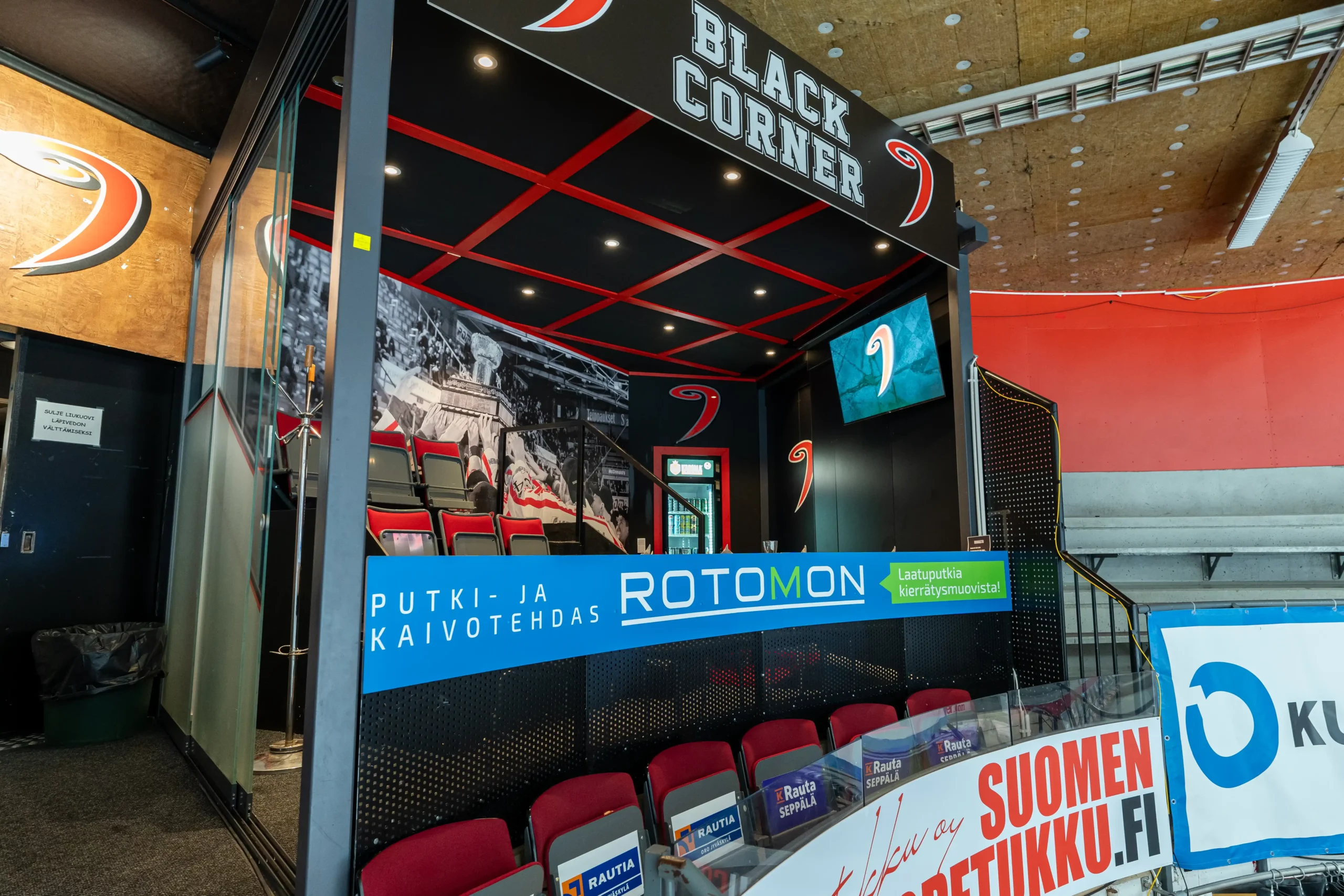 Ovet Black Corneriin avautuvat 1,5 h ennen ottelun alkua. Buffet-ruokailu on tarjolla Hurrikaaniklubilla ottelun alkuun saakka. Ensimmäisellä erätauolla katamme kahvit sekä Elosen leivokset Corneriin.